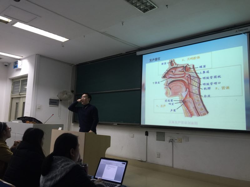 教师的职业特点决定了教师用嗓频率高、强度大、持续时间长,而大多数教师缺乏科学用嗓的知识,百分之七十以上的教师不同程度患有咽喉炎及声带疾病。王洋教授凭着自己在声乐方面的丰富经验,为老师们讲解了人体的发声器官、发声原理及教师因用嗓不当而引发的咽喉疾病,教给大家科学用嗓的方法。他还让老师们上台,现场指导老师们发声技巧、教老师们如何用气息说话,亲切幽默的讲课方式使现场的气氛十分活跃,受到老师们的热烈欢迎,讲座结束后部分老师还在请教正确的发声方法。老师们纷纷表示,讲座对于教师科学用嗓、远离咽喉疾病非常有意义,收获很大,今后一定勤加练习,用正确的发声方法保护好自己的嗓子。