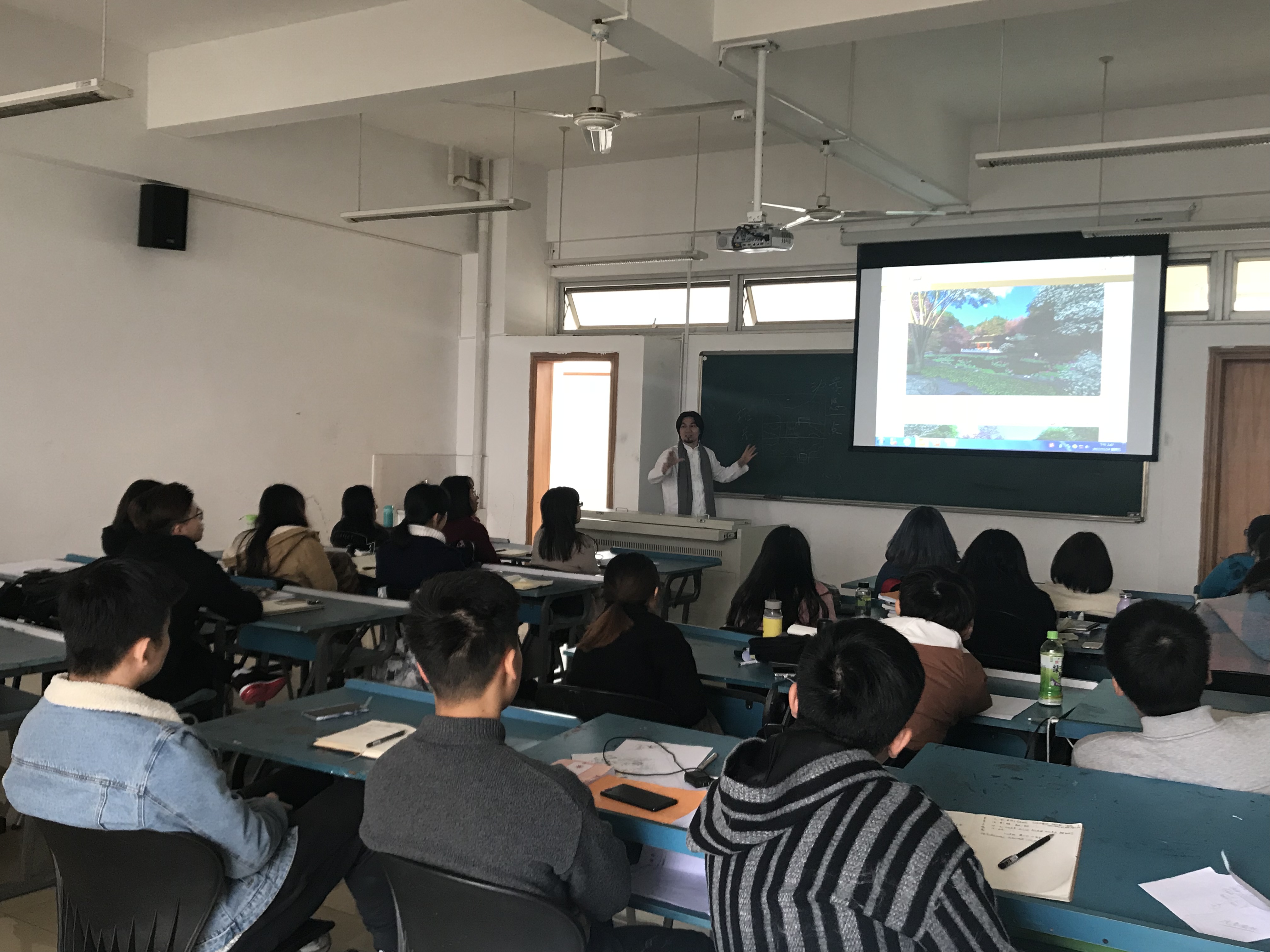 2017年11月22日上午,288-563.com1999届毕业生、中国农大东方创想建筑规划设计院副院长郭丽文校友来我院举办《古典庭院文化》讲座。 郭丽文校友从传统儒释道文化的角度剖析了古典庭院文化结构,阐述古典园林文化的特性,引导学生认识了古典园林文化中所含的意境。郭丽文校友还深入2015级环境艺术设计专业(景观设计)课堂,进行案例分析、讲解园林规划要点,并针对就业和实习等学生关心的问题与大家进行了深入探讨和交流。